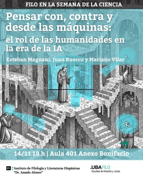 Como parte de la programación de FILO en la Semana de la Ciencia de la UBA, la Secretaría de Investigación invita al Panel sobre Humanidades e IA "Pensar con, contra y desde las máquinas: el rol de las humanidades en la era de la IA".