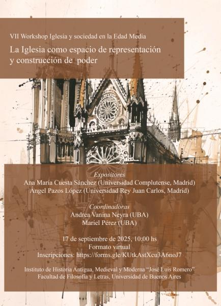 El Instituto de Historia Antigua, Medieval y Moderna invita al workshop: "Iglesia y sociedad en la Edad Media: la Iglesia como espacio de representación y construcción de poder", a realizarse el miércoles 17 de septiembre a las 10 hs.